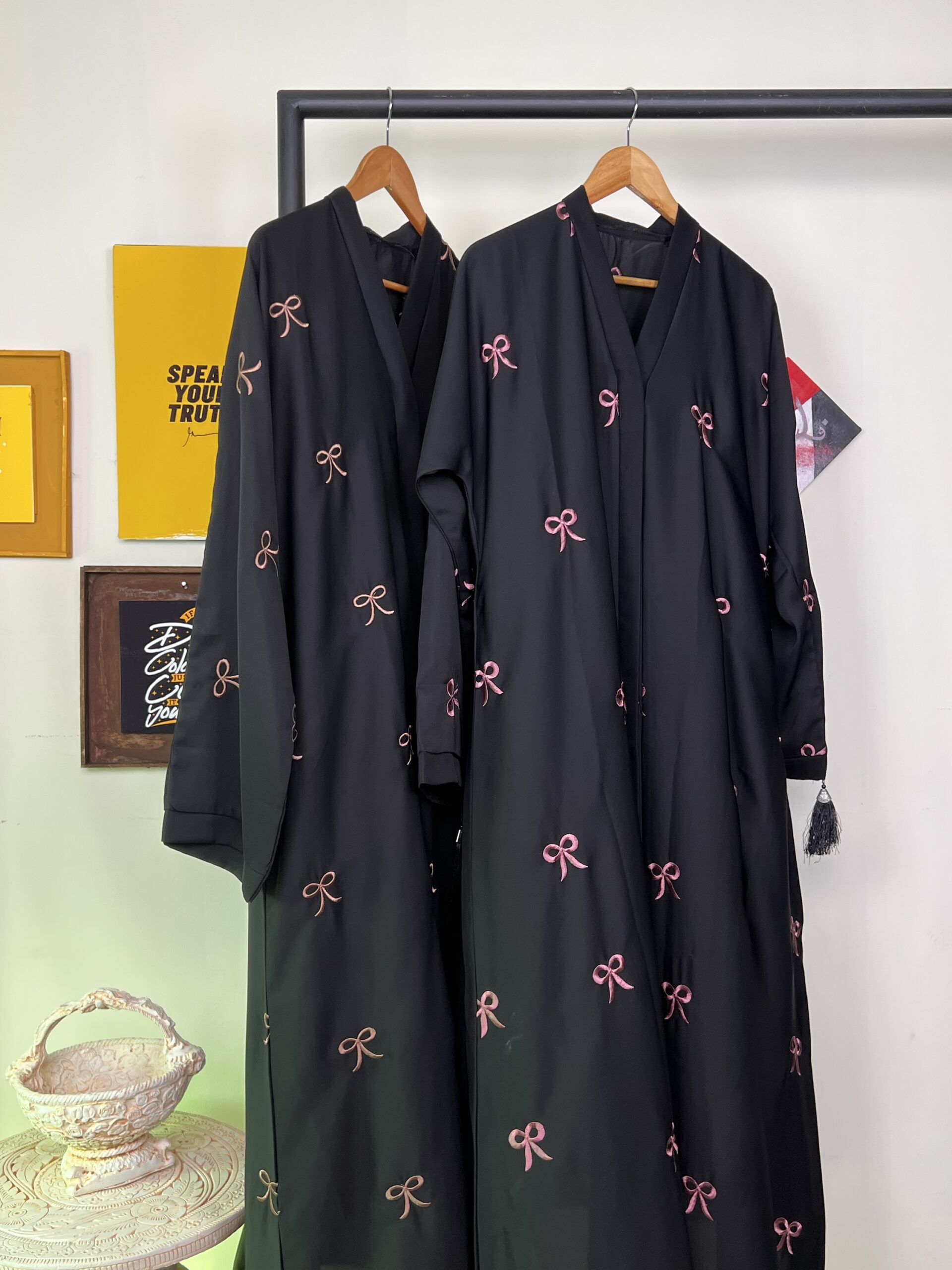 Black Bow Abaya – Luxe Threadwork Edition