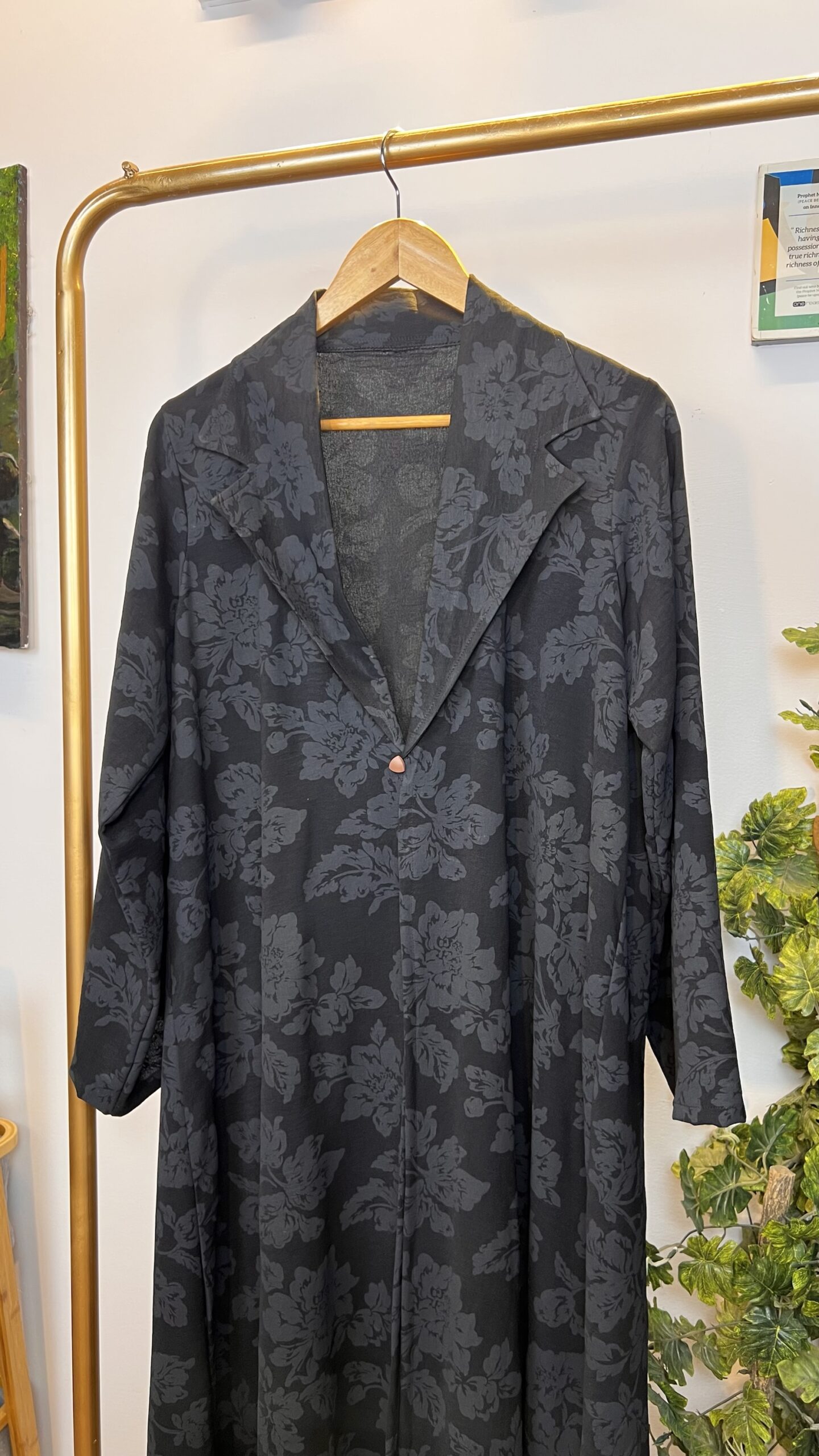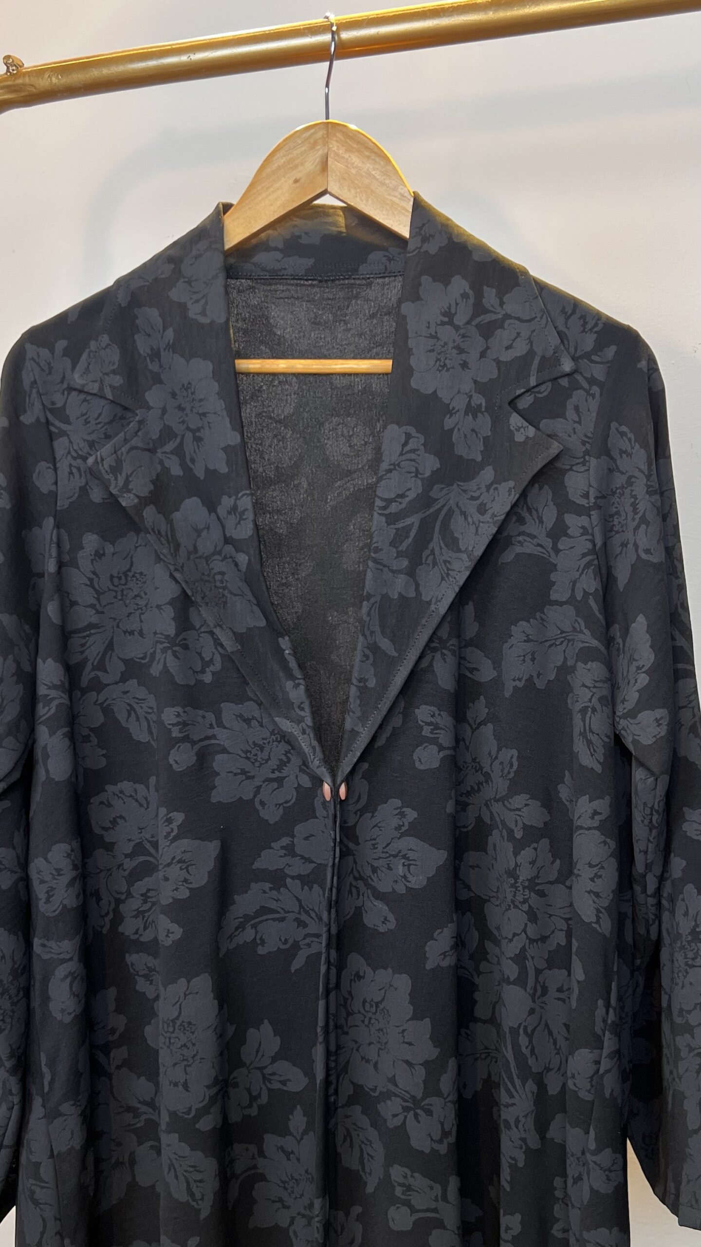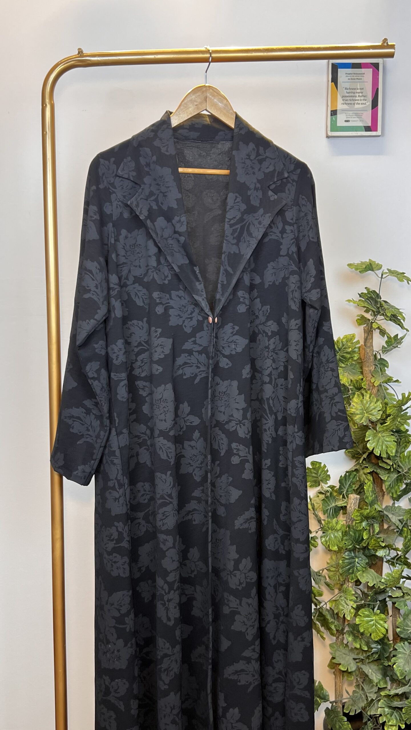 Introducing our latest coat-style outer from Qanitas, crafted in pure imported textured silk that speaks luxury at first glance. The rich black tone with subtle floral texture gives it an effortlessly elegant fall, making it perfect for formal gatherings, winter evenings, and graceful layering. Designed with a relaxed, modest silhouette, this piece blends modern outerwear vibes with timeless haya—classy, statement-making, and truly premium.